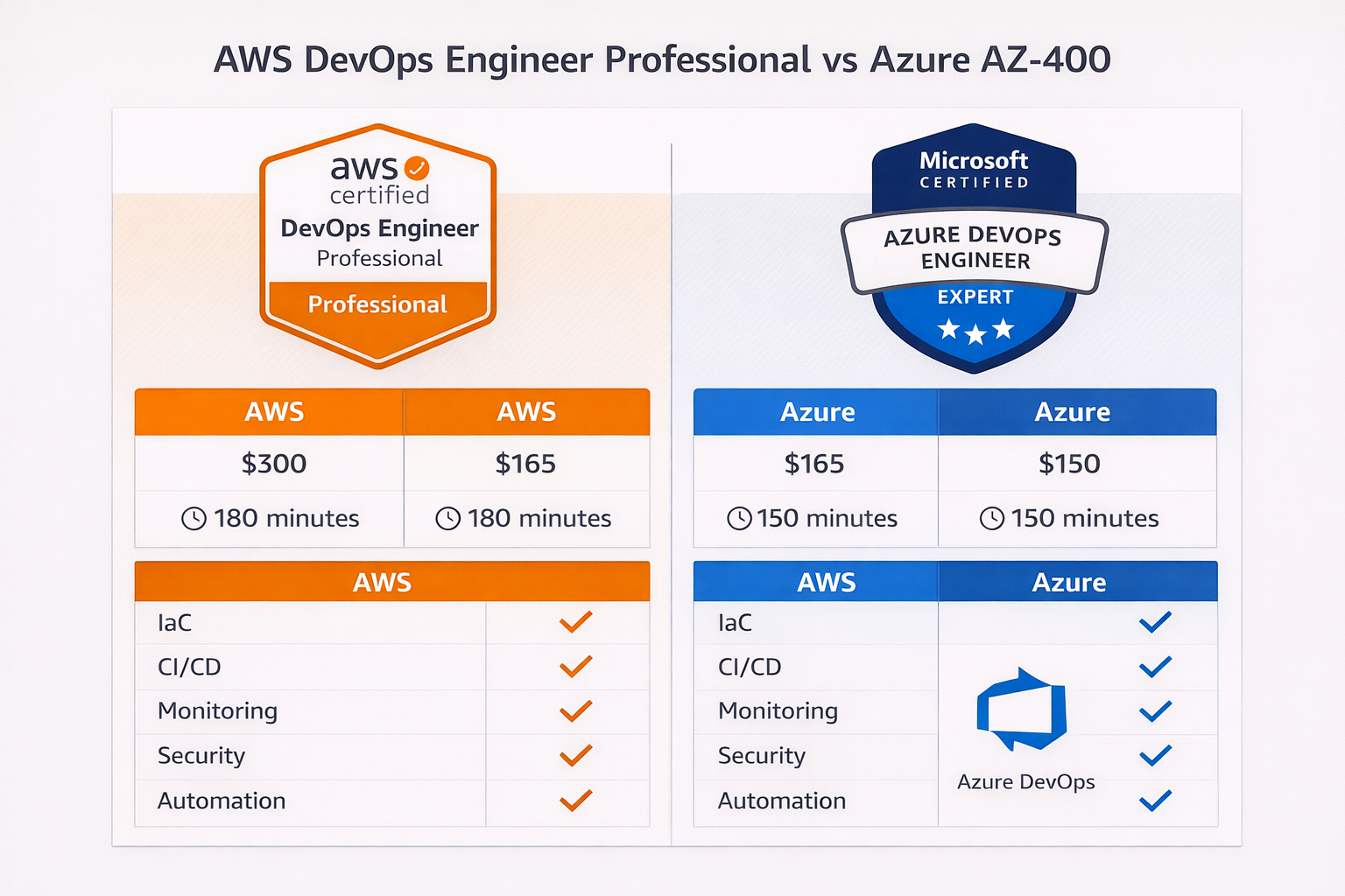 Many learners also ask what is AZ 400 certification and how it differs from AWS DevOps certifications. AZ-400 is a Microsoft Azure DevOps certification focused on Azure-based DevOps tools.