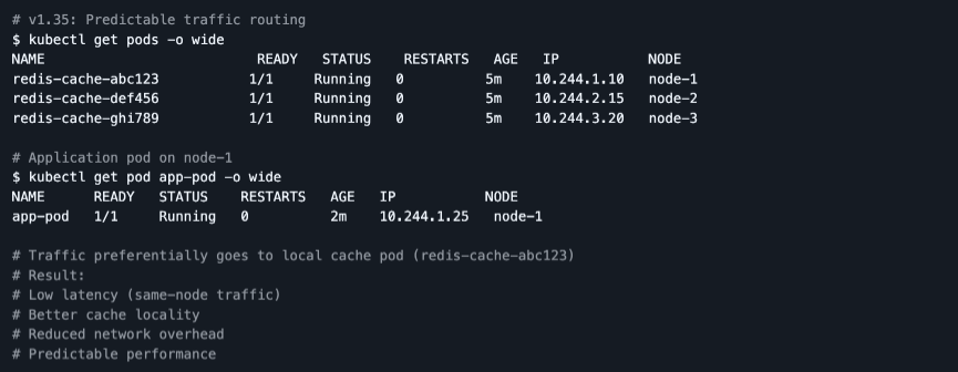 v1.35 adds enhancements around workload‑aware and topology‑aware routing, including options that make it easier to prefer traffic staying on the same node when appropriate.