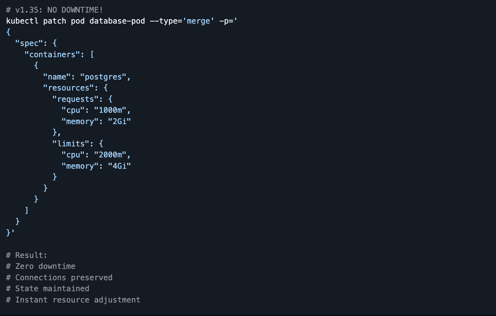 1. In‑Place Pod Resize – Now Stable Before in v1.34
