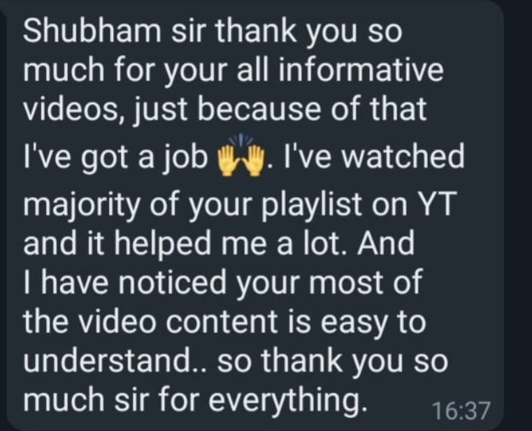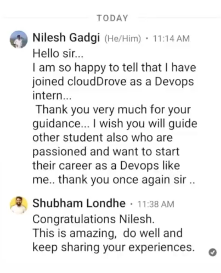 "No matter whether you are from IT or Non-IT, the teaching skills of Shubham bhaiya are Awesome and the syllabus will cover almost all the topics which you need for a DevOps Engineer.! Thank you So Much"