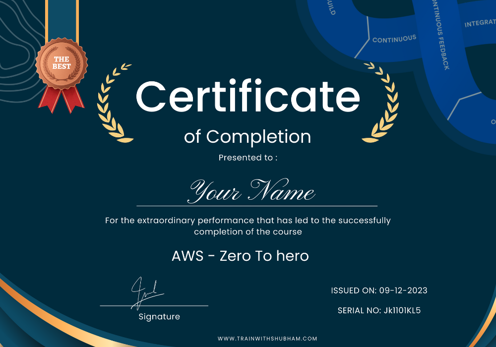 Upon successful completion of the AWS Zero to Hero Course, we will Provide the course completion certificate for AWS and its validity is a lifetime.