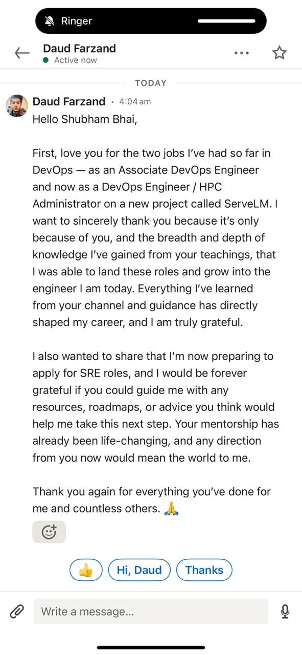 Hi, I am Shubham Londhe, YouTuber - TrainWithShubham, and an experienced Software Engineer and Technical Trainer, passionate about DevOps and development, whose vision is to transform everyone's career into IT, irrespective of their background.
