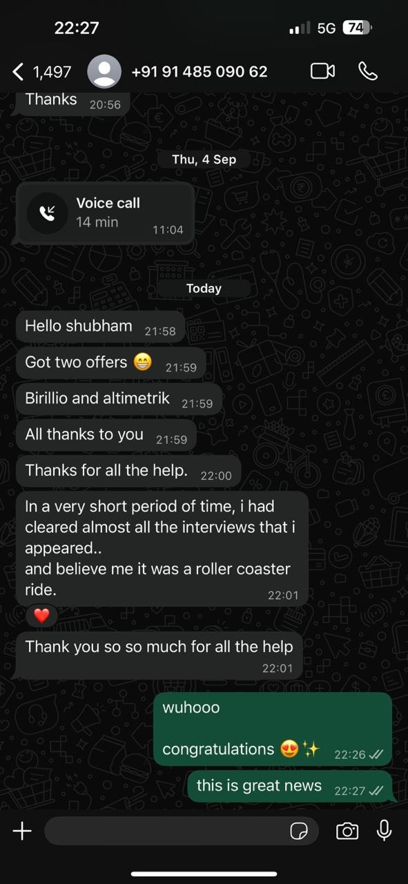 Thanks to TWS, I cracked multiple interviews! The team really understands students' needs.